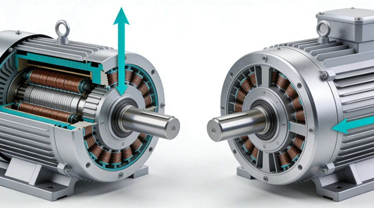 Axiale flux (links) versus radiale flux (rechts) dwarsdoorsneden