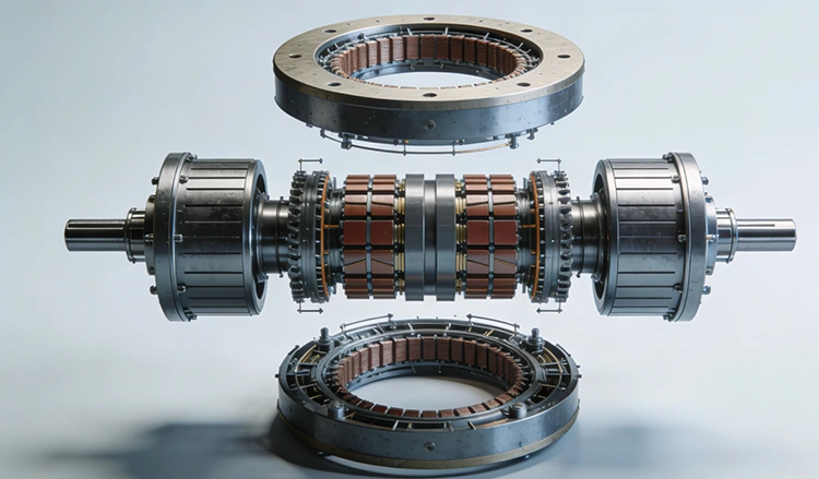 Axiale flux-/schijfmotoren: past zich aan aan dubbele back-yoke-structuren voor axiale magnetische circuits, met een plat ontwerp voor been- en tailleaandrijfmodules in humanoïde robots.